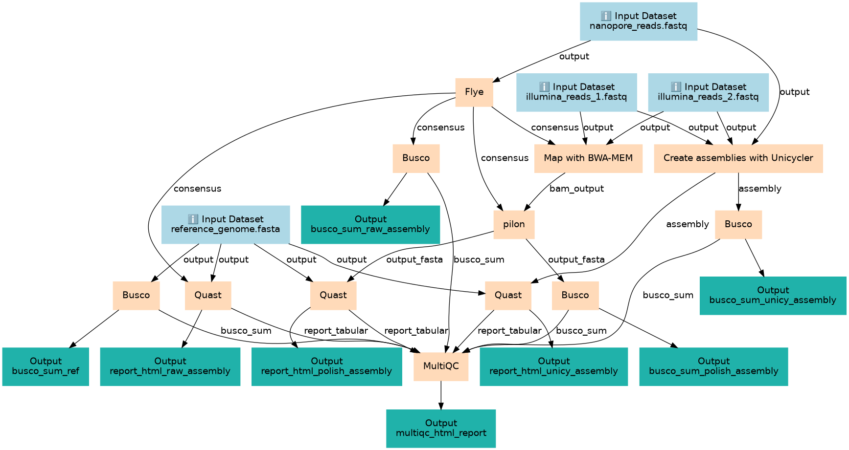 This workflows is part of the tutorial Hybrid genome assembly - Nanopore and Illumina, available in the GTN